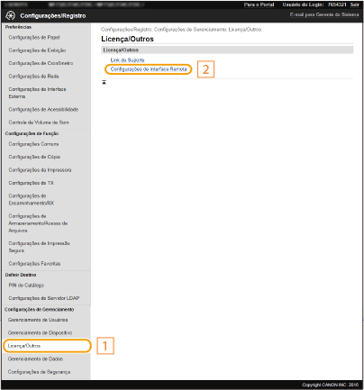 [Configurações de Interface Remota].