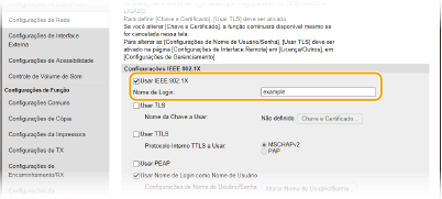Selecione a caixa de verificação [Usar IEEE 802.1X] e introduza o nome de início de sessão na caixa de texto [Nome de Login].