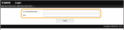 Introduza a ID adequada em [ID de Departamento] e o PIN em [PIN].