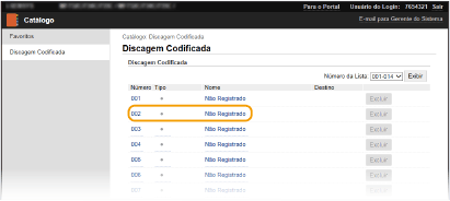 Pode apagar um destino registado clicando no botão [Excluir] correspondente.
