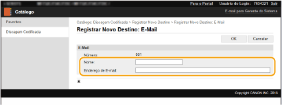 Pode utilizar o computador para registar destinos no livro de endereços da máquina e editar informações de destinos registados. Especifique aqui o destino da pasta partilhada ou do servidor FTP.