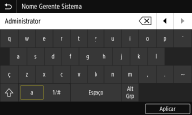 Quando se carrega na tecla [RETURN/ENTER], a introdução do texto é concluída, à semelhança do que acontece quando se seleciona <Aplicar>.