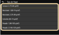 Se o ecrã mostrado acima não aparecer quando o papel é colocadoSe colocar sempre o mesmo papel no tabuleiro multifunções, pode ignorar as operações de definição do papel gravando o tamanho e o tipo do papel como predefinição. No entanto, o ecrã mostrado acima não aparece se registar a predefinição. Para ver o ecrã, selecione <Especificar ao Colocar Papel> (Registar predefinições de papel para o tabuleiro multifunções).