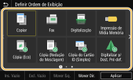 Pode reorganizar os botões como quiser para tornar a sua utilização mais fácil. Por exemplo, pode colocar as funções mais utilizadas primeiro ou juntar os botões de função com botões de atalho para Definições Favoritas. Também pode inserir um espaço em branco em vez de um botão para facilitar a visualização do ecrã Início.