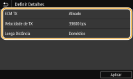 Também pode especificar <ECM TX> e <Velocidade de TX> em <Menu>