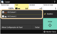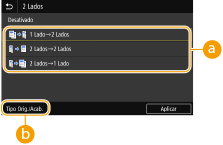 <Imprimindo 2 Lados> pode não estar disponível com alguns tamanhos e tipos de papel. Papel disponível