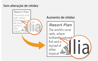 Pode ajustar a nitidez da imagem copiada. Aumente a nitidez para realçar texto e linhas esbatidos ou diminua a nitidez para melhorar o aspeto das fotografias de uma revista.