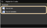 Selecione <Tipo de Livro> ou <Tipo de Calendário>