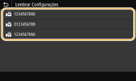 É possível chamar os destinos anteriormente especificados. Quando especifica um destino utilizado anteriormente, a máquina configura também as mesmas definições de fax (por exemplo, a densidade) que utilizou da última vez que enviou documentos para o destino em questão.