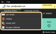 Se selecionar um destino a partir de <Catálogo> no ecrã Início, é possível ver o ecrã das funções básicas de envio de I-Fax enquanto o destino selecionado permanecer especificado.