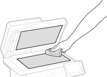 Limpe periodicamente o pó do vidro de exposição e da parte de baixo do alimentador para evitar a impressão de manchas em originais ou impressões.