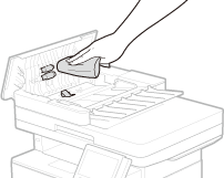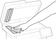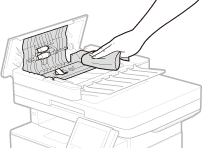 O pó de grafite ou pó nos rolos internos do alimentador ou na área de digitalização da alimentação de documentos podem causar o surgimento de manchas nas impressões. Se isso acontecer ou se o papel encravar com frequência, limpe o alimentador. Se o problema persistir após a limpeza do alimentador, efetue a limpeza automática do alimentador.