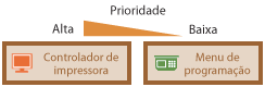 Prioridade de definiçõesSe uma definição de impressão for especificada no controlador da impressora e no painel de controlo da máquina, a especificação do controlador da impressora sobrepõe-se à especificação do painel de controlo. A especificação do painel de controlo torna-se efetiva nalguns casos específicos, como ao imprimir através de PS/PCL e ao imprimir a partir de UNIX ou outro sistema operativo que não seja compatível com controladores de impressora.