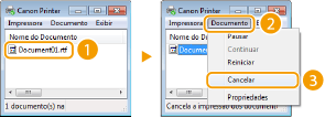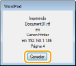 Cancelar a partir de uma aplicaçãoEm algumas aplicações, aparece um ecrã como o que é mostrado abaixo. Pode cancelar a impressão clicando em [Cancelar].