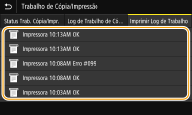 Se <Exibir Log do Trabalho> estiver definido para <Desativado>, não pode verificar os registos de impressão. <Exibir Log do Trabalho>