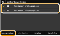 Selecione a caixa de verificação correspondente ao destino que pretende apagar e selecione <Remover de Dest.>.