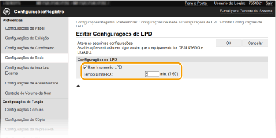 Selecione a caixa de verificação para imprimir via LPD. Quando não pretender utilizar a impressão através de LPD, desmarque a caixa de verificação. [Usar Impressão RAW]