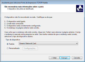 ![]() *Ao selecionar [Tipo de dispositivo], selecione [Dispositivo de impressão em rede Canon com P9100] em [Padrão].