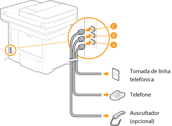 Ligue o cabo telefónico incluído à tomada de linha telefónica na máquina (