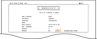 Não foi possível enviar um fax porque a máquina do destinatário não respondeu por a linha estar ocupada ou por outros motivos.