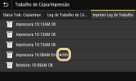 Se ocorrer um erro, como a impressão não ser bem-sucedida, ou se não conseguir enviar ou receber um fax ou original digitalizado, o código de erro correspondente é apresentado num relatório ou no ecrã de registos de trabalhos sob a forma de um número de três dígitos. Verifique a secção que se segue para ver causas e soluções relativas a cada código de erro. Para saber como imprimir um relatório de erros e informações incluídas no relatório, consulte