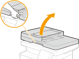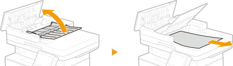 Levante o tabuleiro de originais e puxe o original para fora cuidadosamente.