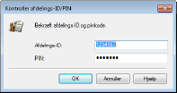 [Tillad printjob med ukendte id'er]For at kunne sende job fra en computer, når administration af afdelings-id er aktiveret, skal du indtaste korrekt id og pinkode (