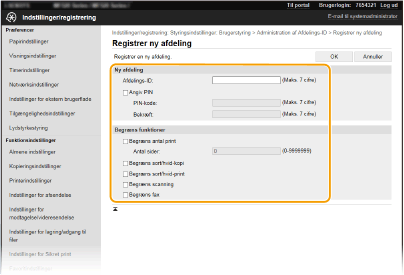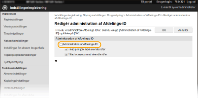 Marker afkrydsningsfeltet [Administration af Afdelings-ID].