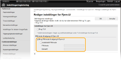 ![]() Brug af kontrolpaneletDer er også adgang til pinkodeindstillinger for Brugerinterface til fjernbetjening fra <Menu> på Hjem-skærmen. <Indstillinger for Fjern-UI>