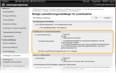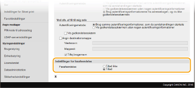 Når [Tillad send kun til mig selv eller angivet mappe] er angivet i [Filafsendelse]