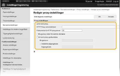 Markér afkrydsningsfeltet for at bruge den angivne proxyserver, når der skal kommunikeres med en HTTP-server.
