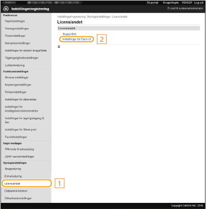 For mere information om de grundlæggende handlinger, der skal udføres ved indstilling af maskinen fra Brugerinterface til fjernbetjening, henvises til Angivelse af menuindstilling for Brugerinterface til fjernbetjening.