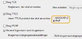 Marker afkrydsningsfeltet [Brug TTLS] eller [Brug PEAP].