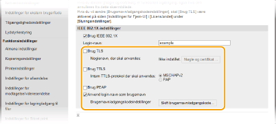 Brug af kontrolpaneletDu kan også aktivere eller deaktivere IEEE 802.1X-godkendelse fra <Menu> på Hjem-skærmen. <Brug IEEE 802.1X>