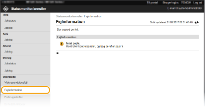 Når du er logget på i systemadministratorstatus, kan du klikke på [Jobnummer] for at få vist detaljerede oplysninger om dokumentet, eller for først at få vist dokumentet, der ikke kunne videresendes.
