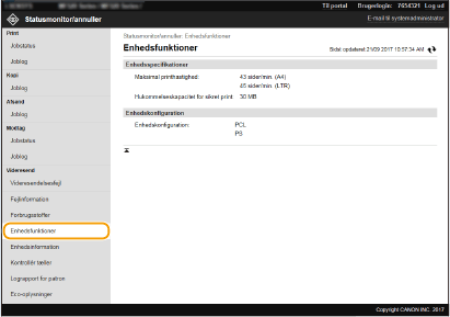 Uanset indstillingen for styring af afdelings-id'er vises alle dokumenter til udskrivning, der i øjeblikket udskrives eller venter på at blive udskrevet.