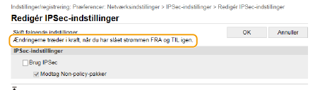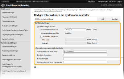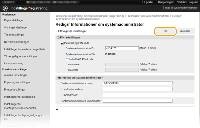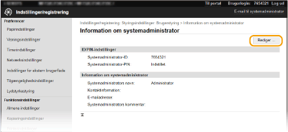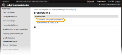 Nogle indstillinger kan kun ændres, når du er logget på i Systemadministratortilstand.