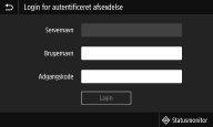 LDAP-servergodkendelse) aktiveres, vises loginskærmen for Autoriseret afsendelse, når fax- eller scanningsfunktionen bruges.
