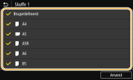 Fjern afkrydsningsfelterne for de papirformater, du ikke vil have vist.