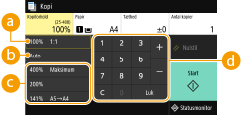 Du kan forstørre eller reducere kopier ved at bruge et forudindstillet kopiforhold som f.eks. <A5->A4> eller ved at indstille et brugerdefineret kopiforhold i et interval på 1 %.