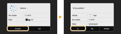 Kontroller statussen for kopijob, inden du annullerer