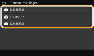 Du kan gendanne en tidligere angivet destination. Når du angiver en tidligere brugt destination, anvender maskinen de samme faxindstillinger (som f.eks. tæthed), du brugte sidste gang, du sendte dokumenter til den destination.