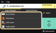 Vælg <I-fax> på skærmen "Grundlæggende scannefunktioner". Skærmen "Grundlæggende scannefunktioner"