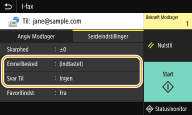 Hvis du valgte <LDAP-server> eller <Angiv Mig selv som modtager>, er destinationen angivet i feltet <Til>.