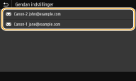 Du kan vælge en destination mellem de seneste destinationer. Når du angiver en tidligere brugt destination, anvender maskinen de samme scanningsindstillinger, du brugte sidste gang, du sendte dokumenter til den destination.