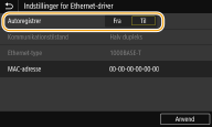 Automatisk konfiguration af Ethernet-indstillinger