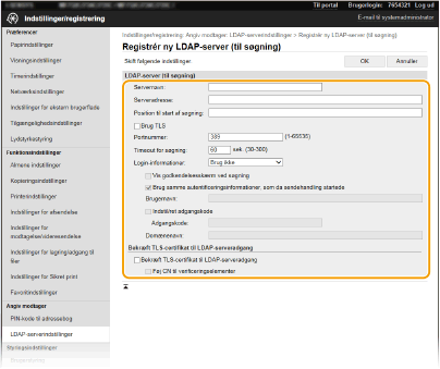 Klik på [Registrér ny server] for [LDAP-server (til søgning)] eller [LDAP-server (til autentificering)].