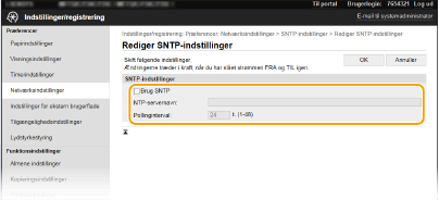 Marker afkrydsningsfeltet [Brug SNTP], og angiv de påkrævede indstillinger.