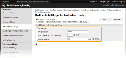 Du skal aktivere indstillingerne for den dedikerede port og SNMP-indstillingerne. For SNMP-indstillingerne skal du indstille [MIB-adgangstilladelse] til [Læs/skriv] for både SNMPv1 og SNMPv3.