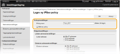 Tast inn alfanumeriske tegn i tekstboksen [Policynavn] for et navn som skal brukes til å identifisere policyen.